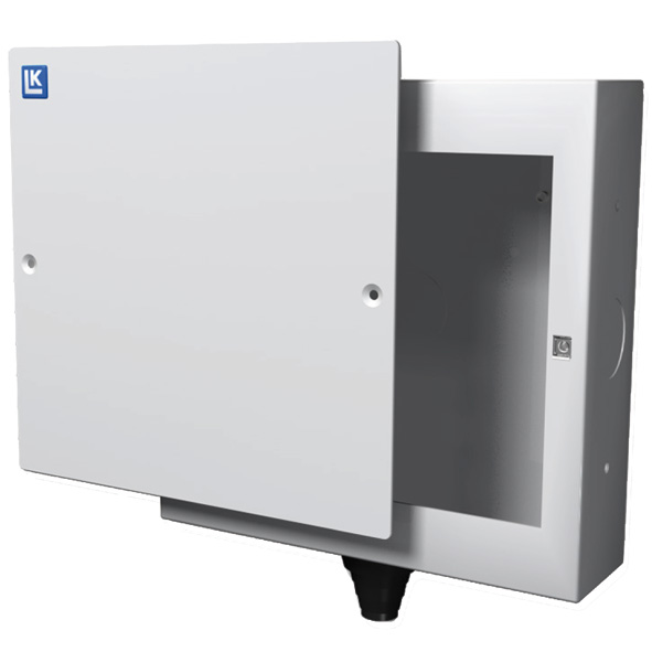 För vattenskadesäker anslutning av tex vattenutkastare. För inbyggnad i vägg. Lev. komplett med lucka och erfoderliga tätningar.