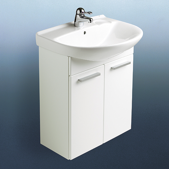Möbelpaket med tvättställ 2322, vitt skåp med två vitlackerade luckor inkl. grepp GB-SL.