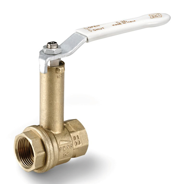 Kulventil i avzinkningshärdig mässing med lång hals, för värme, kyla och tappvatten. Invändig gg.