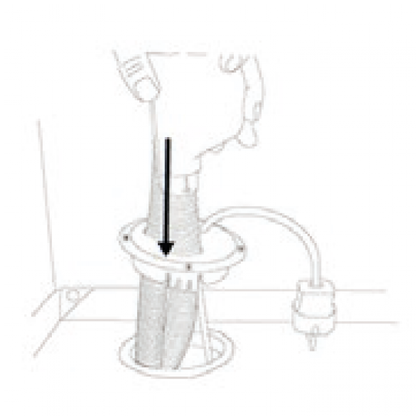 Vattensäker genomföring för diskmaskinens slangar i diskbänksskåpet.