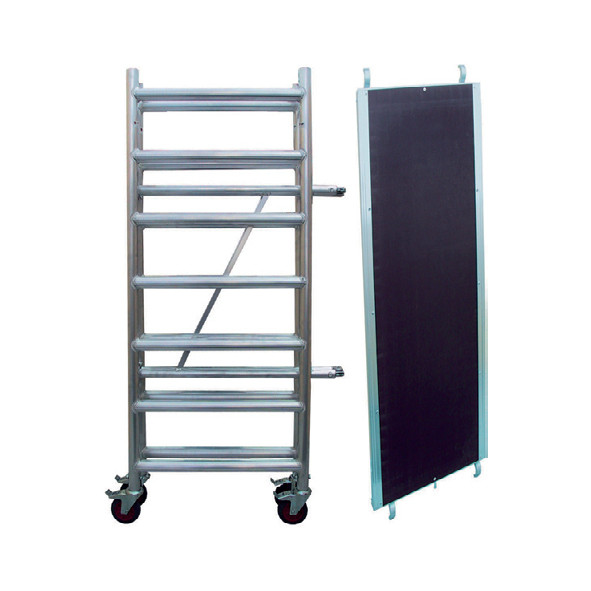 Proffs med plattform och säkerhetsräcke. Yttermått 1780x740 mm. Max plattformshöjd 1800 mm.