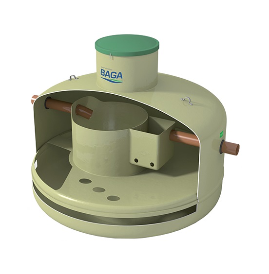Med inbyggd pumpbrunn. Komplettera med Baga pumppaket vid behov. Vikt 149 kg.