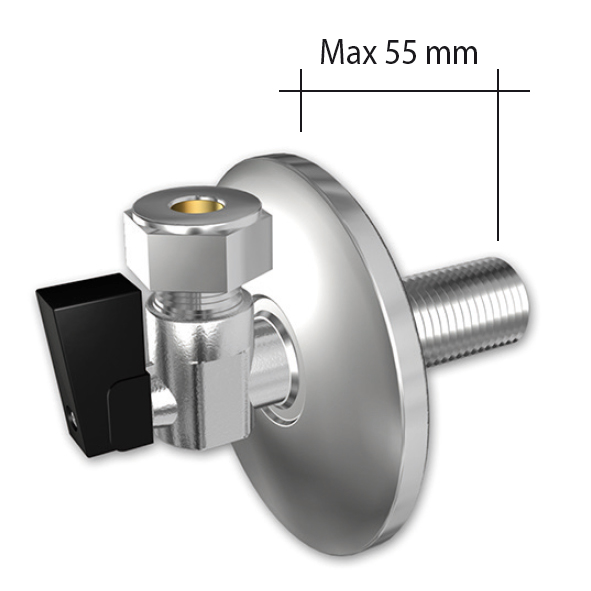 Cu 10 med vinkelavstängning. Utv. R15 för anslutning till LK väggdosa, med 80 mm väggbricka.