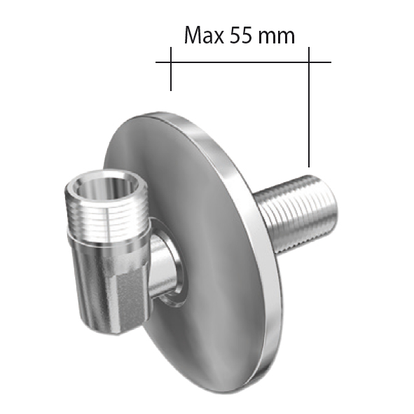 Utv.gg. vinkel x utv. R15 för anslutning till LK väggdosa, med 80 mm väggbricka.