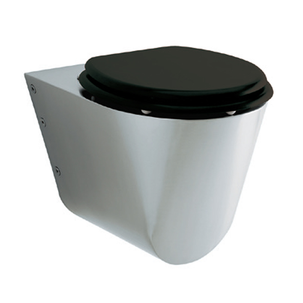 Rostfri WC, väggmonterad. P-lås, väggfäste och ljudisolerande skum. Levereras utan sits.