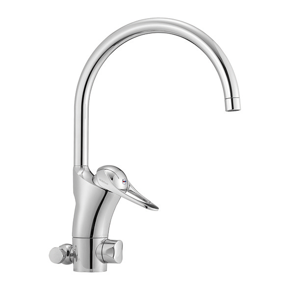Disklådsblandare med anslutning till golv- och bänkdiskmaskin.