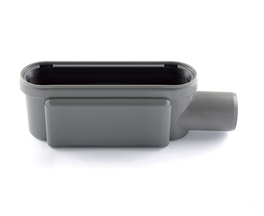 Med vattenlås, gavelutlopp 50 mm. Kapacitet 0,8 l/s.