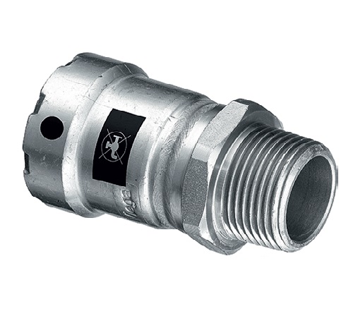 Pressövergång i olegerat stål med zink-nickelbeläggning och EPDM-tätning. För värme-, kyl-, trycklufts- och sprinklersystem. Upp till 110 °C och 16 bar.