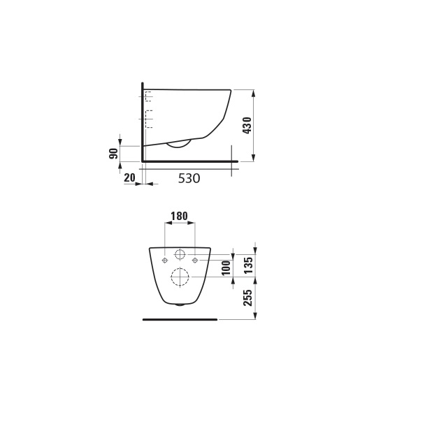 Vägghängd WC-skål utan sits. Bultar c/c 180 mm. Hårdsits med Soft close och Quick release köps separat.