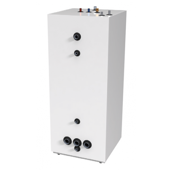 A = Buffert/volymtank, B12L = Varmvattenslinga 12 m i koppar, SOL = Solslinga i koppar,FR = Förrådsberedare i rostfritt, FC = Förrådsberedare i koppar