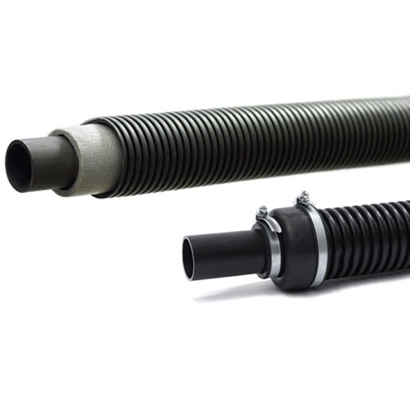 Färdigisolerade rör med mediarör 40 mm PE PN10 SDR17. Korrugerat skyddsrör 63 mm.