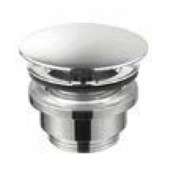 Med vit keramiktopp. Går ej att stänga, passar de flesta tvättställ men extra lämplig till de utan bräddavlopp.