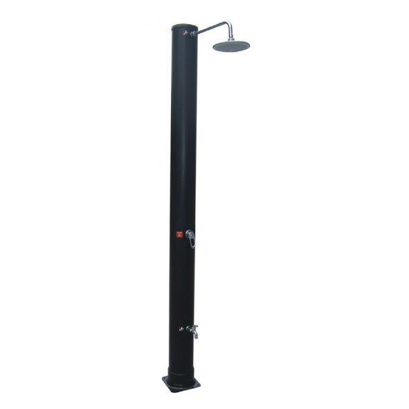 Utomhusdusch med soluppvärmd 40 l vvb. Både takdusch samtfotdusch/vattenutkastare.Kopplas till kallvattnet med trädgårdsslang.
