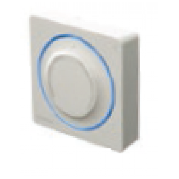Trådbunden termostat med tryckt skala på vredet. Kopplas med fyrledad kabel.