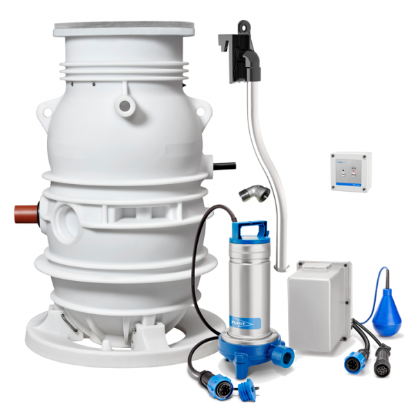 Flygt Compit 901, installationsfärdig prefabricerad pumpstation avsedd för orensat avloppsvatten (spillvatten). Stationen, som är tillverkad av rotationsformad polyeten (PE), är 1905 mm hög. Max nedgrävningsdjup 1865mm. Vikt 181 kg. Sumpvolym 320 liter. Inlopp Ø 2X160/2X110 mm. 1st 110 mm gummitätning medföljer, utlopp PE40 med plaströrskoppling för PE50 (PE40/PE50).Hålsåg med dimension min 102 mm/max 108 mm behövs för medföljande gumminippel för inloppsrörsanslutning dn 110. Skall dn 160 mm inloppsrör anslutas så beställs gumminippel 850863 separat (fordrar hålsåg min 152 mm/max 158 mm). Stationen är utrustad med: - Flygt tuggerpump DXG 25- 11T Plus, pumpen installeras semipermanent hängande i ett rostfritt tryckrör. - Rörgalleri och kopplingar, avstängningsventil och kulbackventil i PP/PPA. - Lyftkedja i rostfritt stål.- Flygt pumpstyrning APP-111. Matning 1-fas 230 V, sekundärt till pumpen 3x230 V. APP-111 arbetar normalt givarlöst och startar på tid och stoppar vid ”sörpling”, vilket minimerar fettbildning.- Flygt nivåvippa ENM-10 med 13 m sladd (nivå/larmvippa). - Flygt ATU-001 larmenhet.- Lock av betong med lyfthandtag som klarar gång & cykeltrafik.