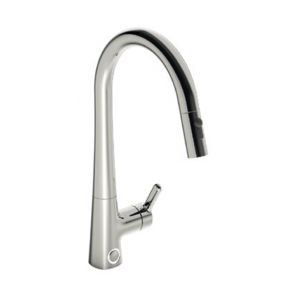 Disklådsblandare med utdragbar pip och elektronisk diskmaskinsavstängning.