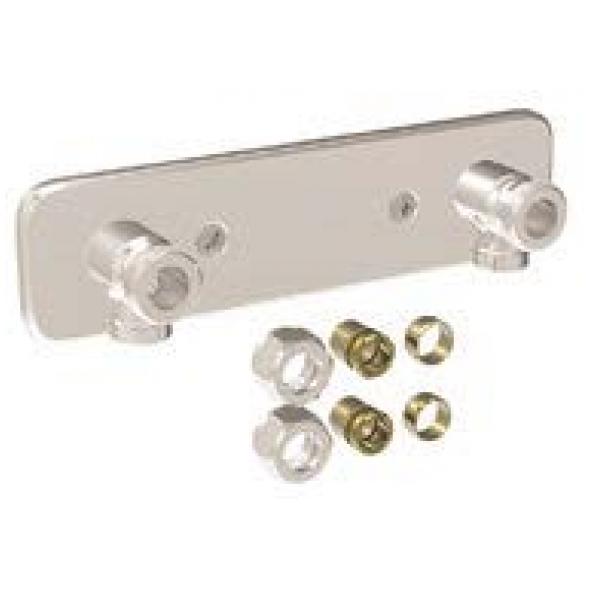 150 c/c, R20 utv.gg. för utanpåliggande rördragning. Inkl. koppling för ansl. av 12 eller 15 rör. Krom.