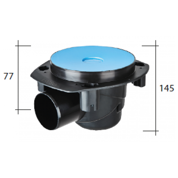 Golvbrunn DN 75. Flöde 1,6 l/s.• Vattenlås, plastlock, klämring och läpptätning.• Skärmall för tätskiktsmembran.