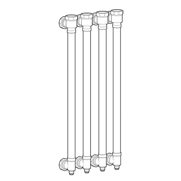 Dockningssats med fyra färdigmonterade rör till anläggningar där externt smutsfilter används och båda kompressordelarna arbetar mot samma behov.