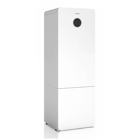 Inverterstyrd värmepump för berg, jord och sjö. Inbyggd 180 l varmvattenberedare med slät rostfri laddslinga, frontpanel i metall.