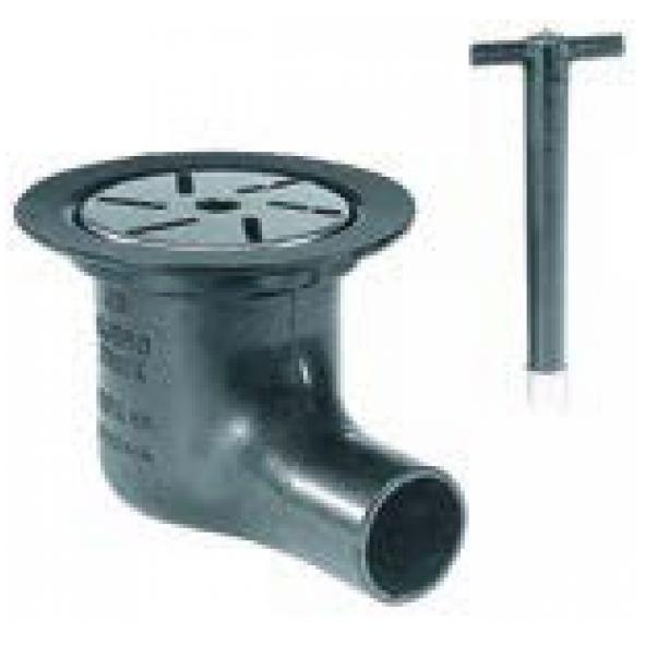 Golvbrunn i gjutjärn. Lev. med låsbart vattenlås i mässing, nyckelsats och rostfri sil.