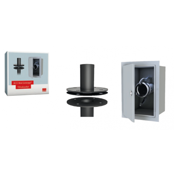 ACO Box Concept Tillval 5Paket innehållande rostfritt tömningsskåp inklusivesnabbkoppling M42 samt tömningsrör Ø 75 mm till friståendefettavskiljare inomhus.