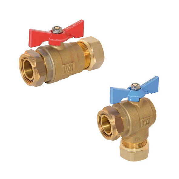 VA kulventil Cu 22 x löpande mutter med Vatettegänga DY22.