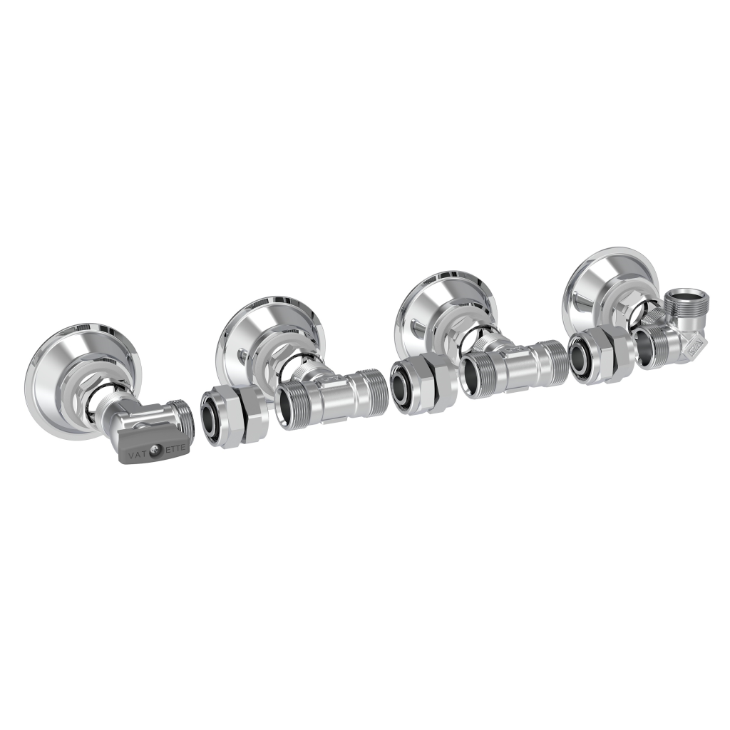 V6 Väggfördelarset vinkel 4-rör med kulventil 16-matning