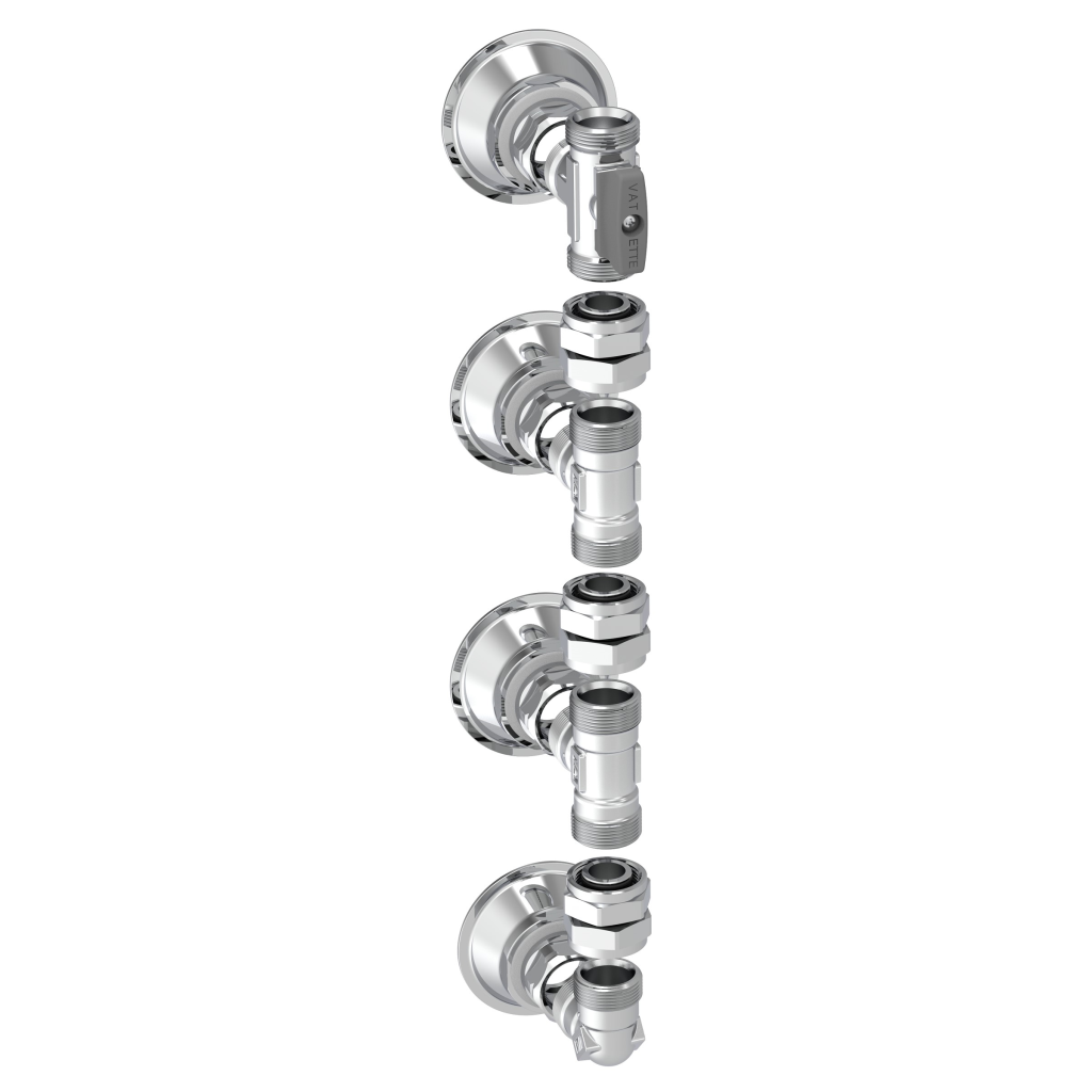 V6 Väggfördelarset rak 4-rör med kulventil 20-matning