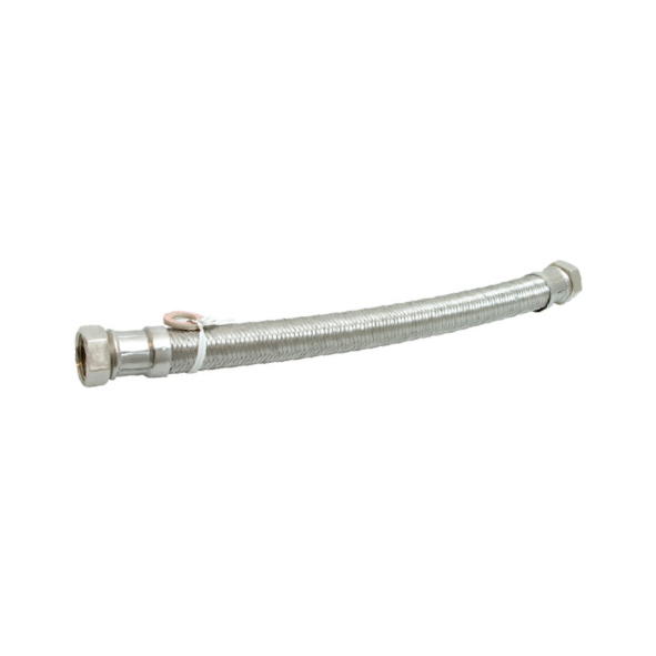 Rak/vinkel med lekande mutter i båda ändar. Anslutningsslang i silikon med rostfri omflätning.För tappvatten. Max drifttryck 10 bar, max temp +90°C momentant och +70°C kontinuerligt.