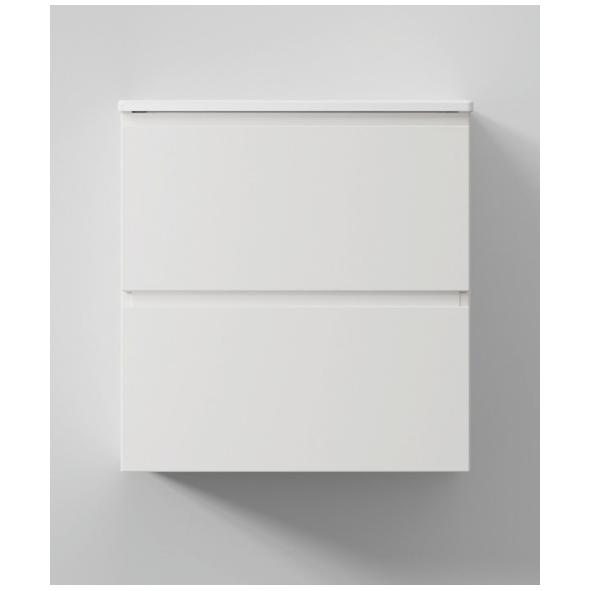 Tvättställskommod med två lådor. Slät front med integrerad grepplist.