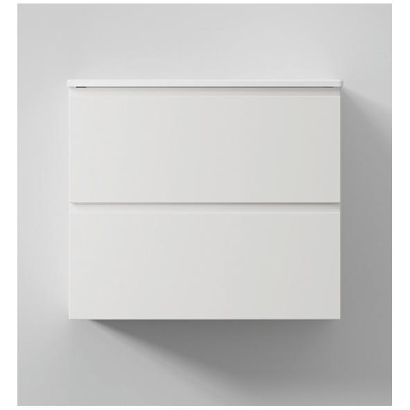 Tvättställskommod med två lådor. Slät front med integrerad grepplist.