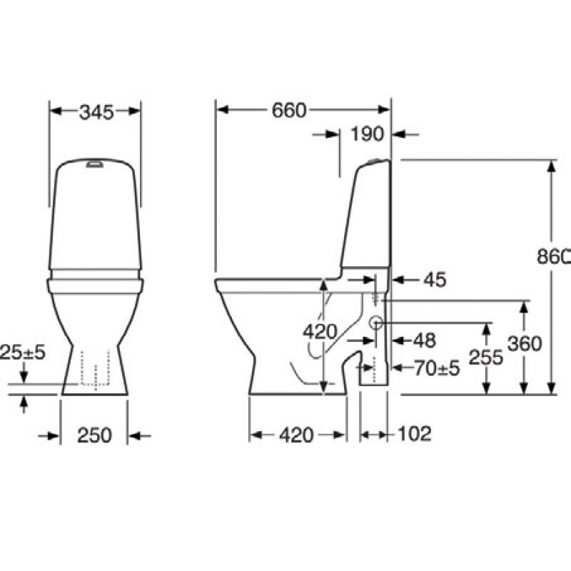 WC-stol med tvättställsansl. 32 mm, ROT-fot & S-lås.