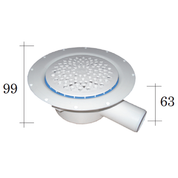 Golvbrunn med uttagbart vattenlås. Flöde 0,9 l/s.Bygghöjd 99 mm.