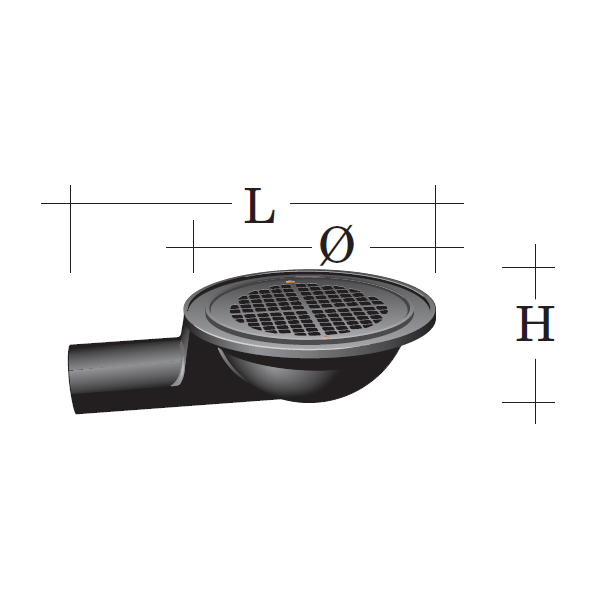 Med sidoutlopp, asfalterad gjutjärn, med fastskruvad sil och en tätningsfläns.