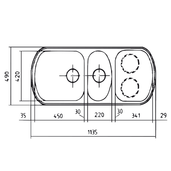 Med avfallshantering, 2 st plastbackar och glidskenor ingår, mått 1135 x 490 mm.