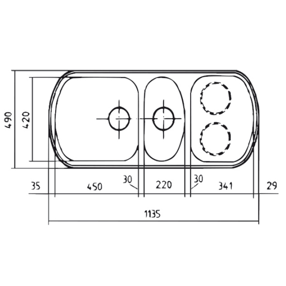 1 st liten sköljskål LS ingår, mått 960 x 490 mm.