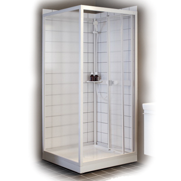Duschkabin med sidoingång. Helt i diskret mönstrat styrén.Används tillsammans med Ifö Next vikdörr ND eller duschdraperi. Vitlackerade profiler.Inklusive duschset och avställningshylla. Exklusive kar, vikdörr, duschdraperistång och blandare. Totalhöjd 2000-2050 mm.