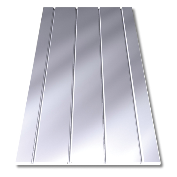 Med hellimmad värmefördelningsplåt i aluminium för golvvärmerör 12, 600x1200 mm. Bygghöjd inkl.rör 16 mm, 4st spår c/c 150.