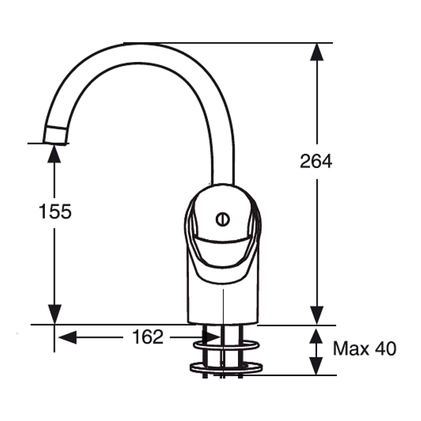 Tvättränneblandare, 32-36 mm hål i bänk. Anslutningsslang med slätände Dn10. Kallstart.
