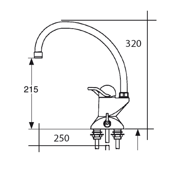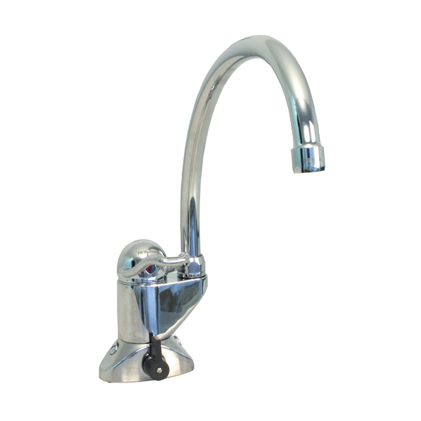 Disklådsblandare 60 c/c med hög pip. Avst. för disk- & tvättmaskin. Omställbar mellan KV & VV, inst. på KV. 23 mm hål i bänk. Ansl. Cu-rör 10 mm.