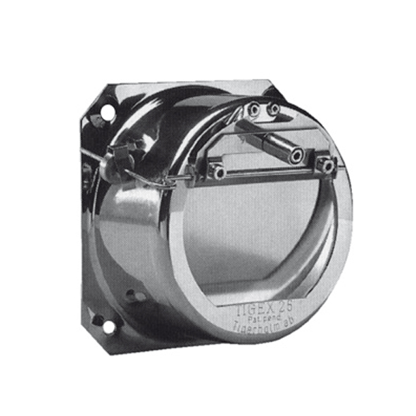 Draglucka i rostfritt stål. För montering på fästplåt till sotlucka. Kan monteras i vilket läge som helst.