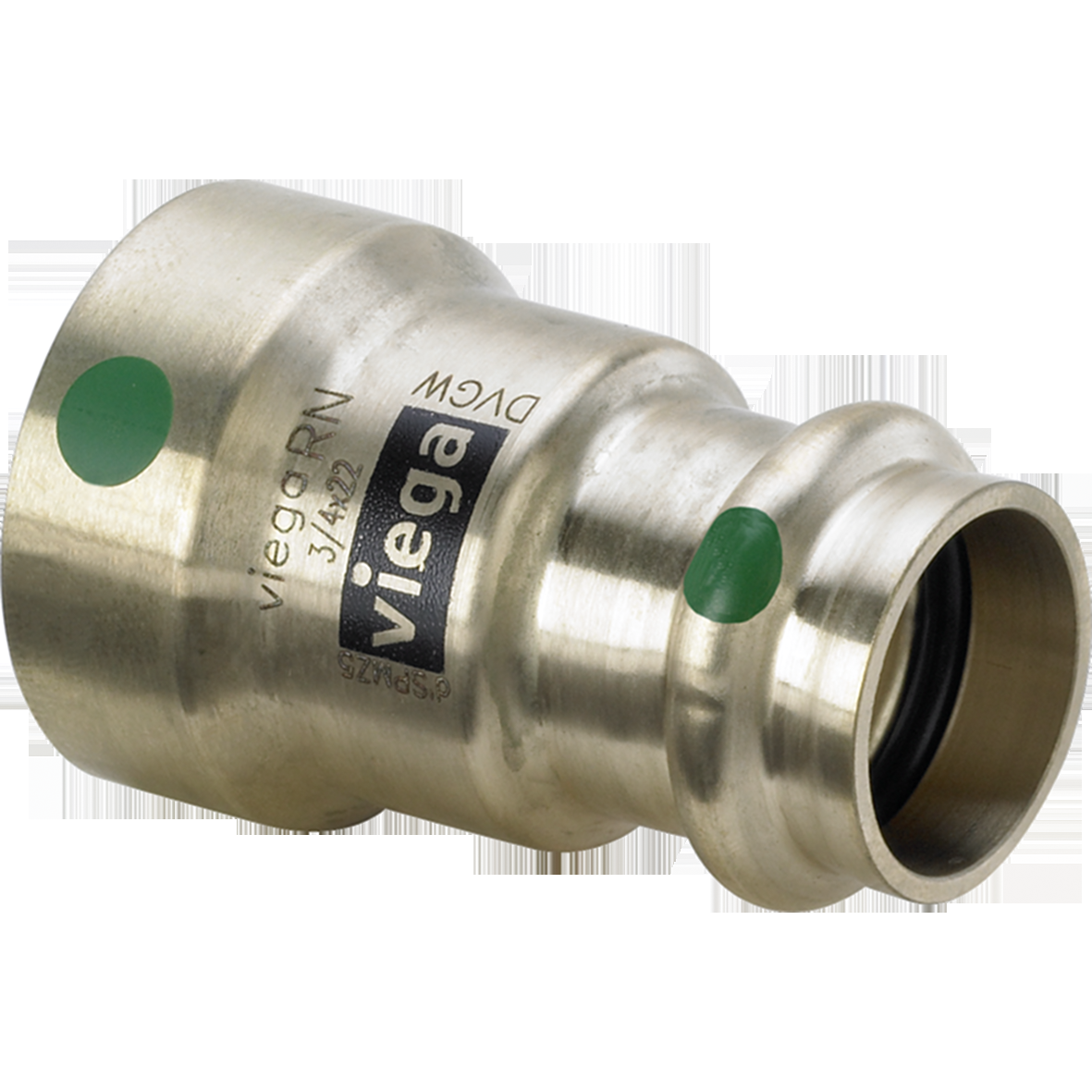 Megapress-adapter av siliciumbrons för direkt övergång från stålrör till kopparrör.