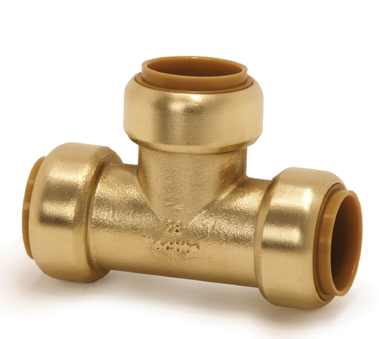 Tectite T24 T-koppling 22x22x22, pushkoppling x pushkoppling x pushkoppling gul i avzinkningshärdig mässing Classic body. Följande användningsområden:
