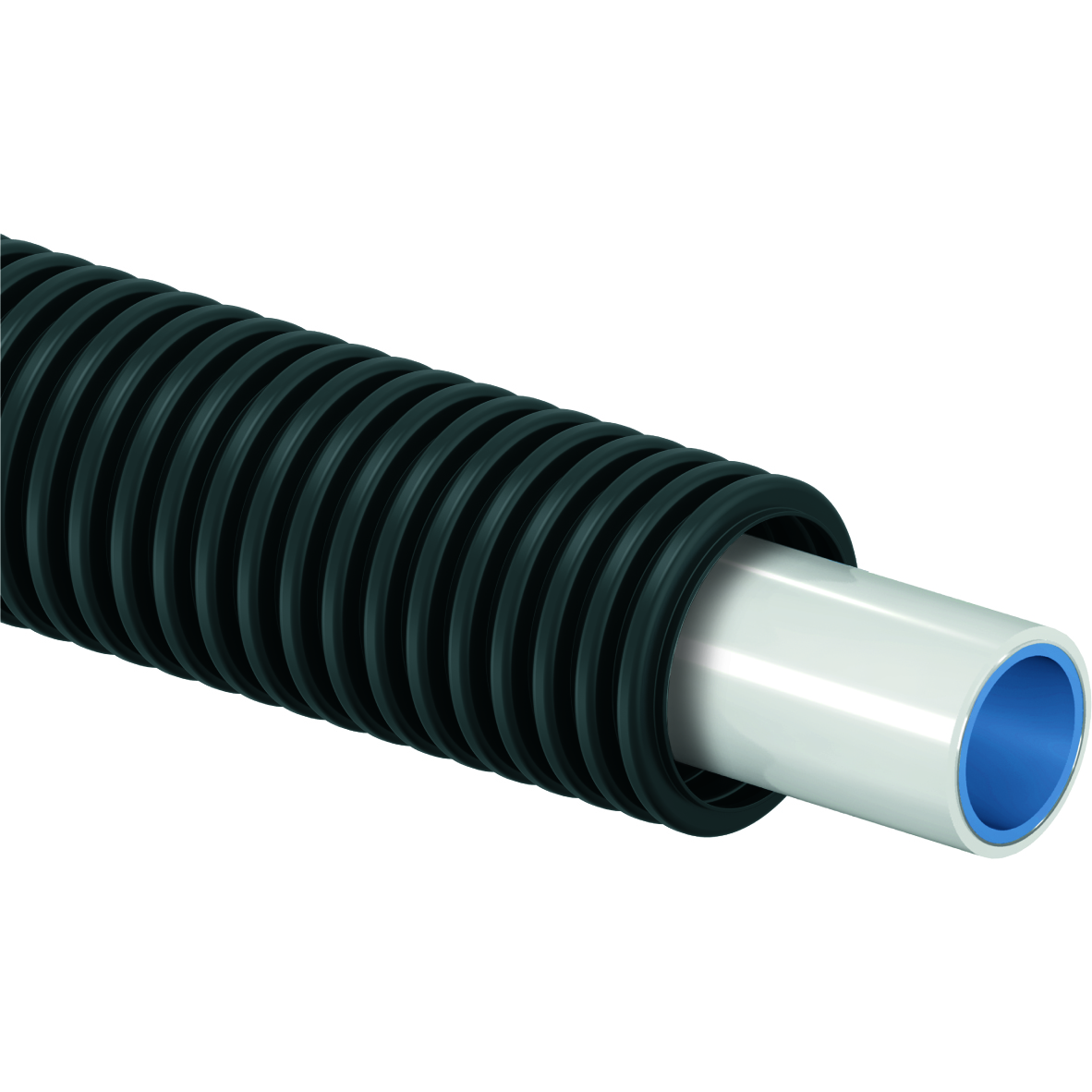 Kompositrör med svart skyddsrör. Skyddsröret är godkänt enligt Sintef testmetod nr 1.Tryckklass PN10, syrediffusionsspärrad.