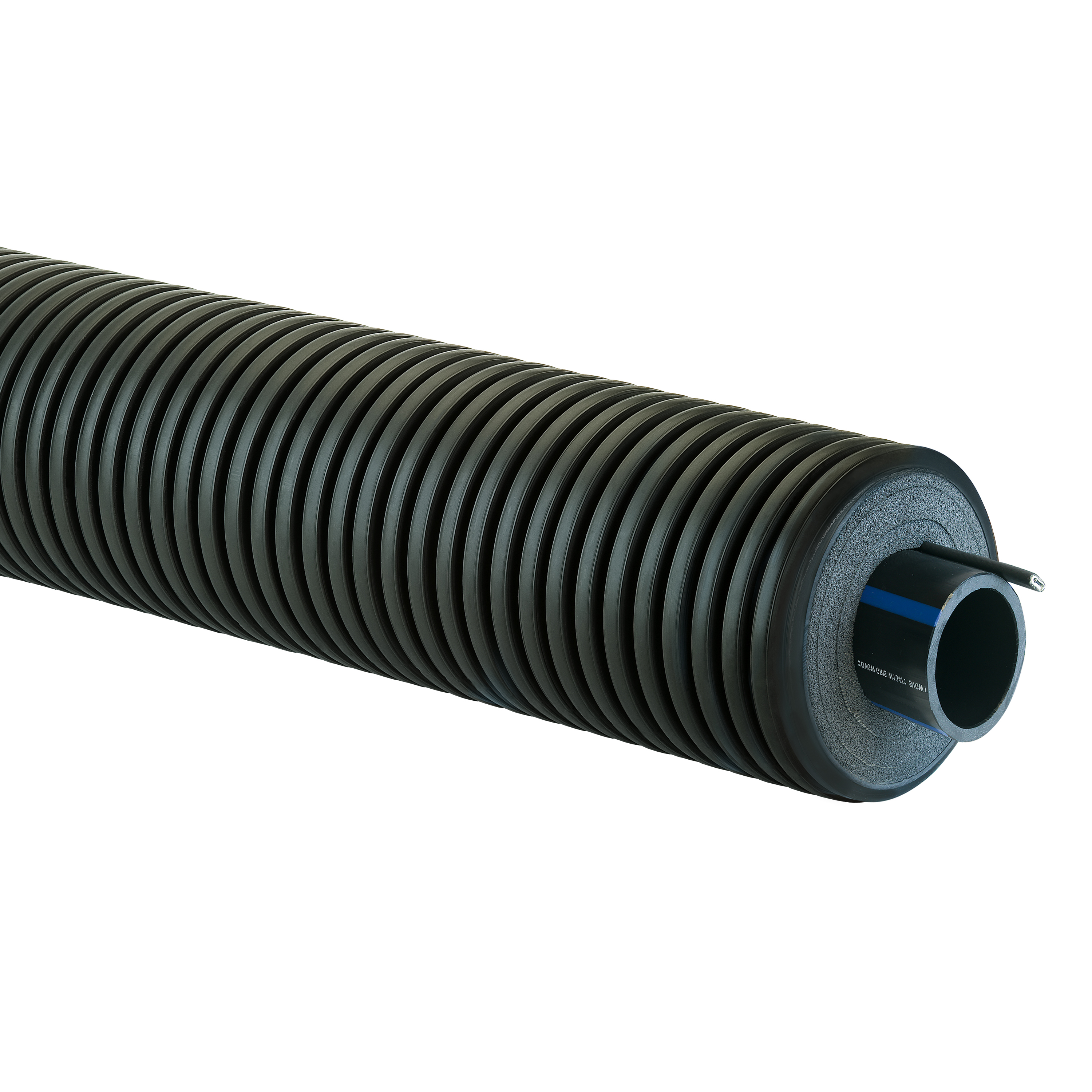 RauHeat BLUE Isolerad kallvattenrörskulvert med självreglerande värmekabel.Max effekt 10W/m. Max installtionslängd 100m vid säkring 10A. Håller rören isfria och hindrar att rören fryser sönder. Mediarör PE, CFC-fri isolering PE-cellplast med slutna celler och korrugerad mantel av HDPE. Avsedda för kallt tappvatten och avloppsledningar med frysrisk. Max drifttemeperatur +25 C. PexFlex BLUE är gjord för 16 bars tryck och temperaturer ner till -30 grader C. Rören kan levereras i exakta längder och kan kompletteras med T-skarvar eller vår Fördelningsbrunn Maxi.