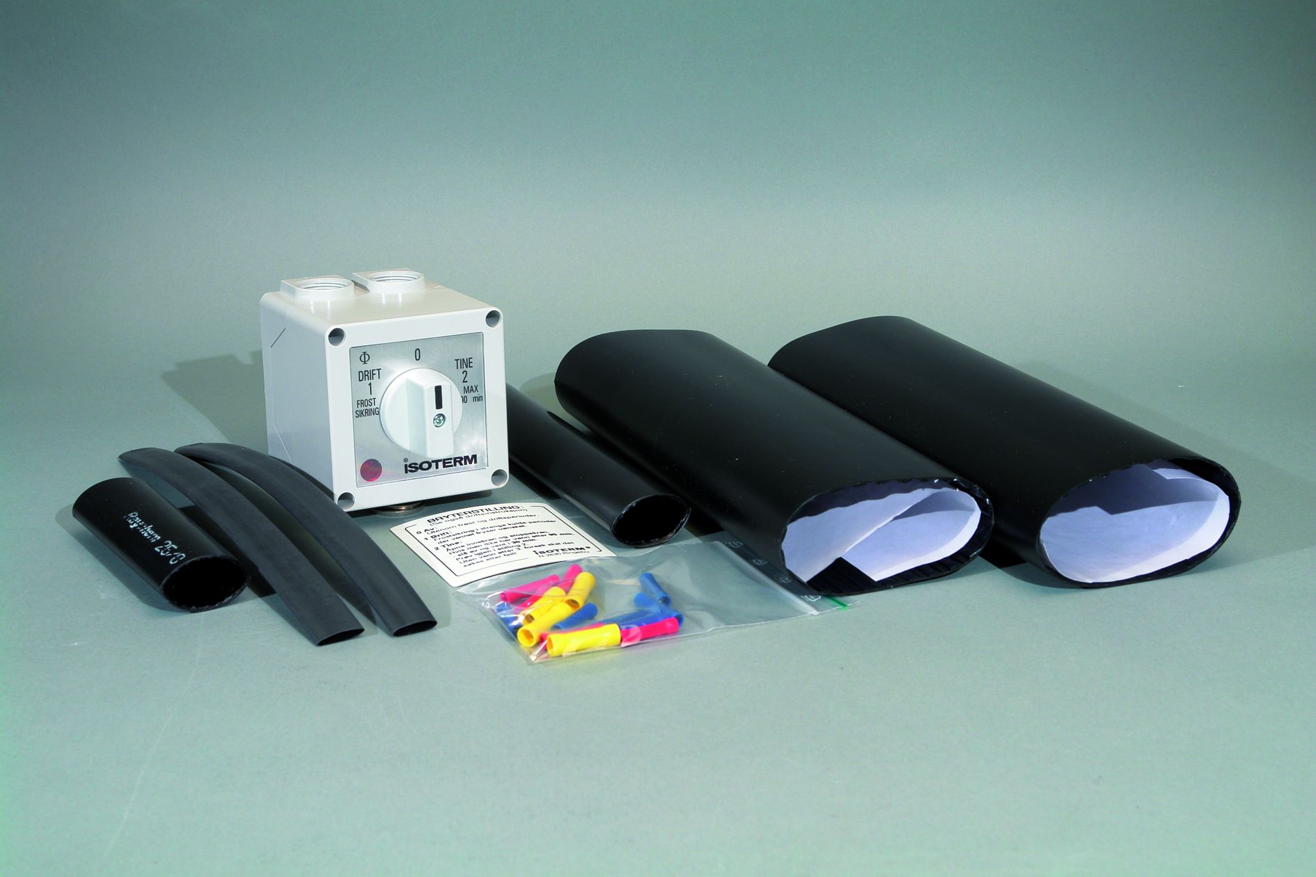 Ändkopplingssats för 2 ändar inkl. brytare CA20 för Isoterm T75, T300 90x8,2/175mm med blå eller grön ohmsk värmekabel og anläggningslengd 15-250m