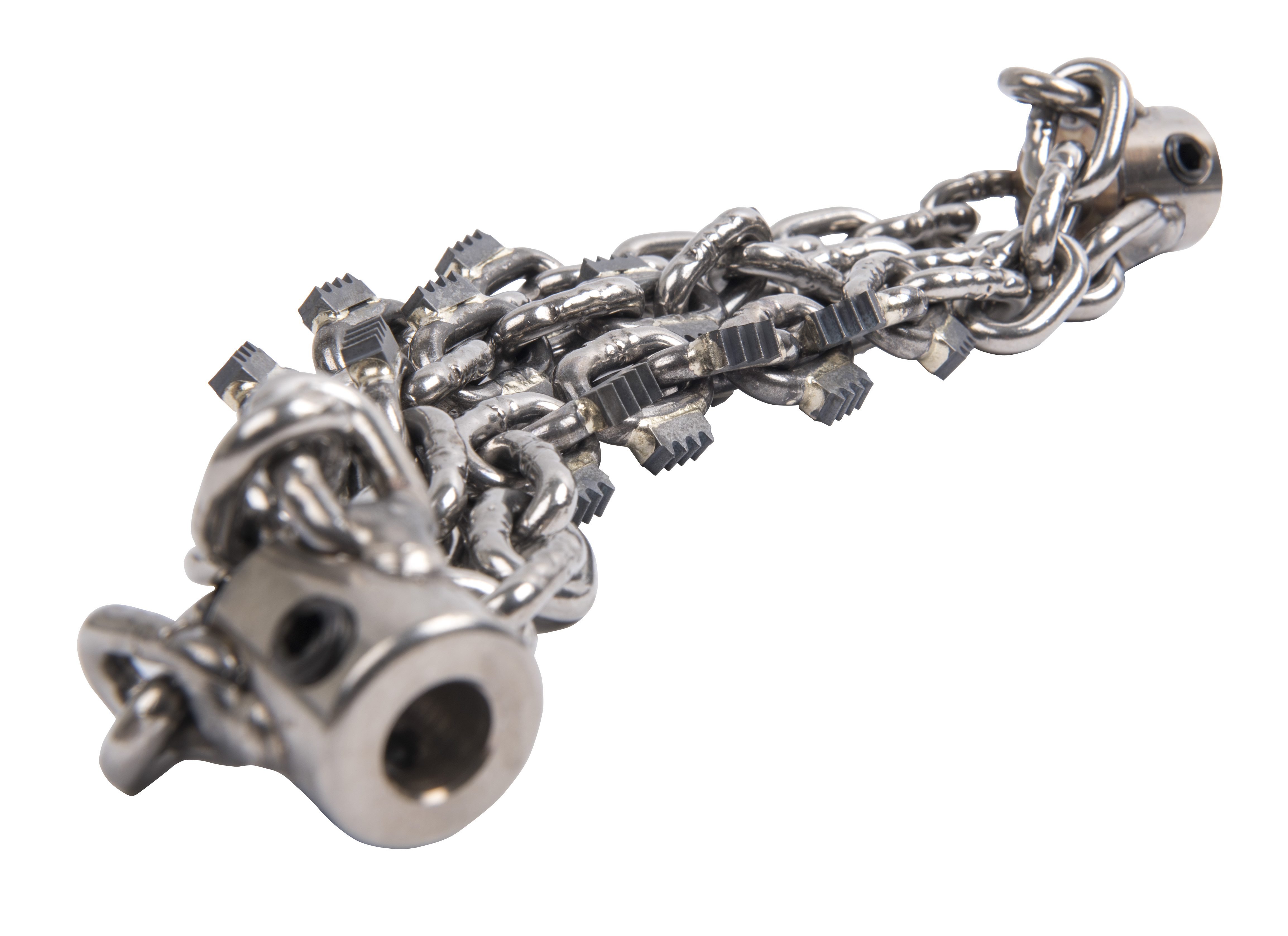 Stark och effektiv renskedja för rensning av gjutjärns-, betong- och stålrör. Fungerar även för borttagning av härdat foder. 4 vertikala taggar på varje hårdmetallskär.