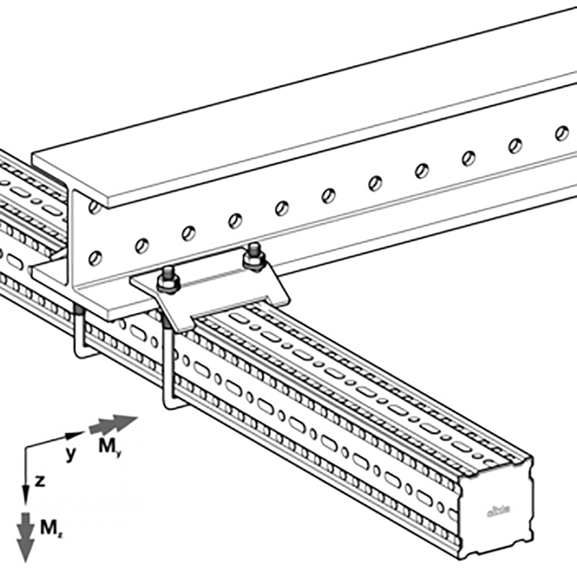 siFramo Balkbygel 40 för siFramo Balkprofil 100 x 100 mm. Svetsfri montering mot stålbalkar.