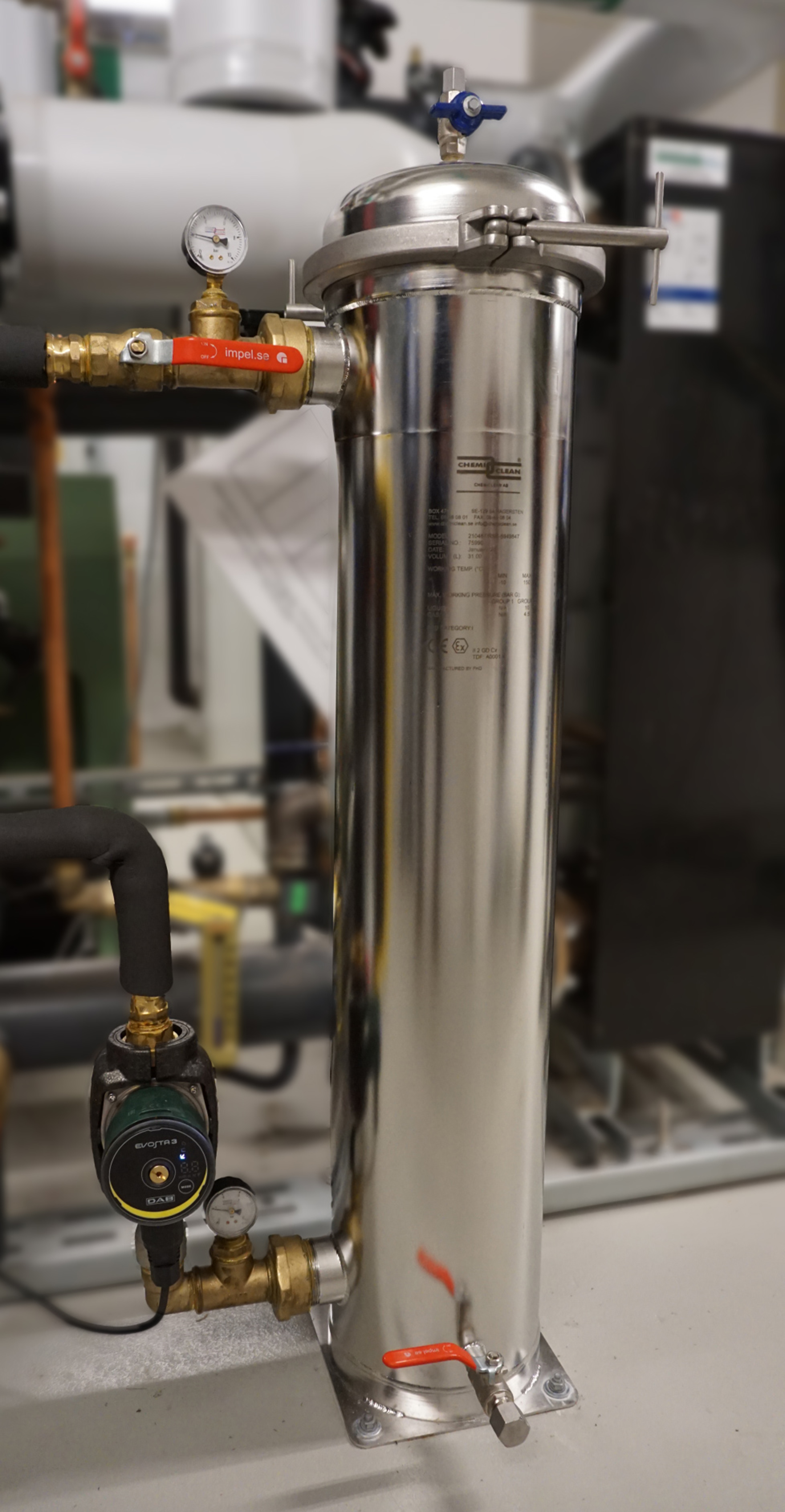 Ett rostfritt påsfilter med magnetstavar som effektivt avskiljer magnetiska- och ickemagnetiska partiklar och smuts från systemvätskan och kan installeras i både fjärrvärme-, värme- och kylsystem där det ställs stora krav på flöde, filtrering och platsbehov.